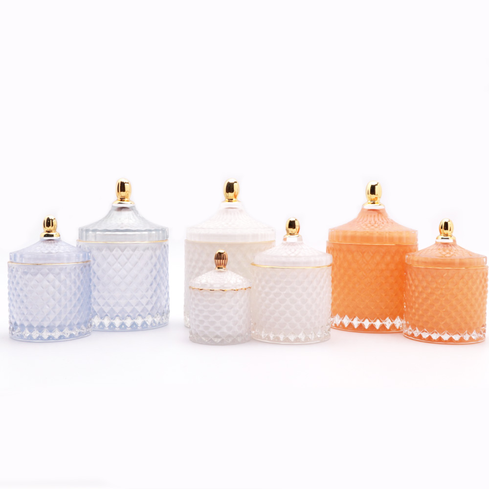 Diamond GEO CUT Colored Glass Candle Jars with Golden Lids |